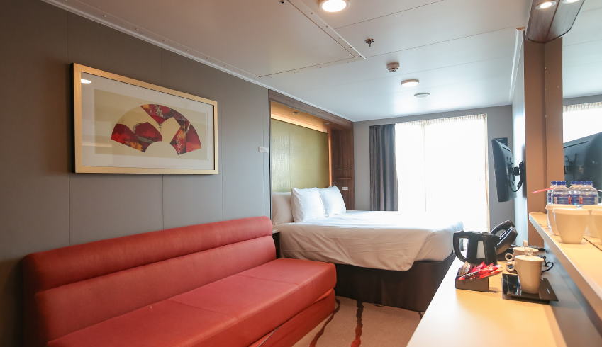 最新クルーズ船、ゲンティンドリーム。15万トンの大型船ですが船客定員は少なめの約3300名(比較例: MSCベリッシマは約17万トンで船客定員は約5700名)。 だから客室も広めです。